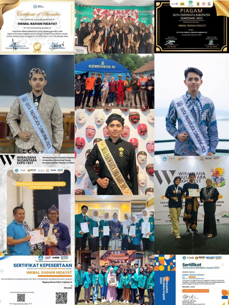 Dalam dunia pariwisata Jawa Barat, sosok Hikmal Raihan Hidayat menampilkan wajah baru dari generasi muda yang aktif, berdaya saing, dan berdedikasi tinggi. Mahasiswa semester 8 Jurusan Manajemen Pemasaran ini bukan hanya unggul secara akademik, namun juga aktif dalam pengembangan sektor pariwisata melalui perannya sebagai Duta Pariwisata Sumedang serta beliau juga mempunyai gelar diantaranya: Masuk dalam 10 besar Duta Pariwisata Kab. sumedang, Ketua umum paguyuban duta pariwisata kab. Sumedang, 5th Runner Up duta pariwisata Jawa Barat 2025